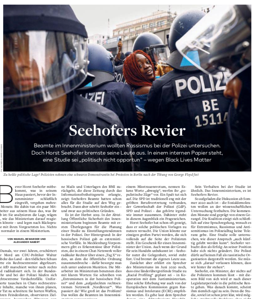 Bevor Horst Seehofer mitbekommt, was in seinem Haus passiert, bevor der Innenminister schließlich bei der Rassismus-Studie eingreift, vergehen mehrere Monate. Bis dahin tun ein paar Mitarbeiter aus seinem Haus das, was ihr Job ist: Sie analysieren die Lage, wägen ab, wie das Ministerium darauf reagieren könnte – und legen nach Rücksprache mit ihren Vorgesetzten los. Nichts ist normaler in einem Ministerium.